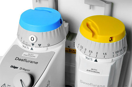 D-Vapor – heated, calibrated anesthetic vaporizer for the enrichment of dry, fresh medical gas with vapour of the anesthetic agent Desflurane (Suprane) in concentrations of 2 to 18 vol.% in anesthesia delivery systems. D-Vapor is inserted in the fresh-gas line of an anesthesia delivery system. The vaporizer is connected between the fresh-gas flow-control unit and the fresh-gas outlet. The operation of D-Vapor depends on the direction of flow of the fresh gas. It must be connected and operated in accordance with the direction of flow specified on the apparatus.