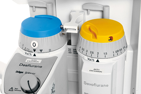 The Auto Exclusion system holds and connects the anesthetic agent vaporizers. Vaporizers are designed to add a controlled amount of anesthetic agent to the fresh gas flow.