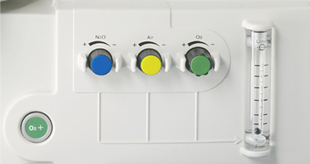 The O2 flush delivers at least a stable flow of 35 l/min. - Flow control knobs