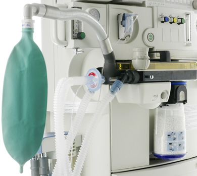 The Compact Breathing System delivers the intended (set) inspired gas mixture to the patient and permits easy removal of waste exhaled gases. As the set inspired gas passes through the breathing system it is warmed and humidified by the soda lime. Additionally the integrated heating plate warms the passing gas while reducing condensating water in the system.