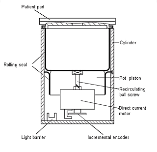 The vertical movement of the spindle transfers the corresponding volume towards the patient (tidal volume: up to 1400 ml)