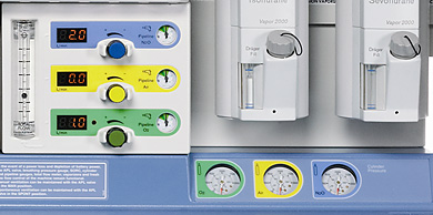 Displays the flow measurement of all aplied gases combined. - O2, Air and N2O electronic fresh gas indicator