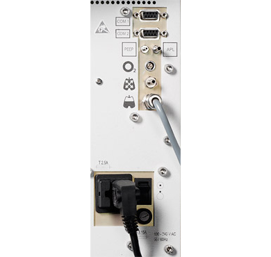 The Fabius GS premium has two ports on the back panel for communication with external devices. The ports are labeled COM 1 and COM 2 and support MEDIBUS and Vitalink communications. - APL