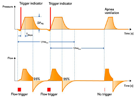 Apnea ventilation: If patient doesn’t trigger a PS stroke a mandatory stroke can be supplied automatically