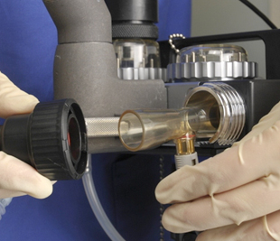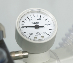 In addition to the electronically displayed measurement, a mechanical pressure gauge can be connected optionally to the breathing system.