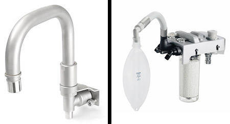 A new Advanced Low Flow Kit has been developed to further optimize the low flow characteristics of the Fabius GS Premium and the Fabius Tiro. The kit contains a heater for the compact breathing system and a water trap for the ventilator hose. The low flow kit function is:
